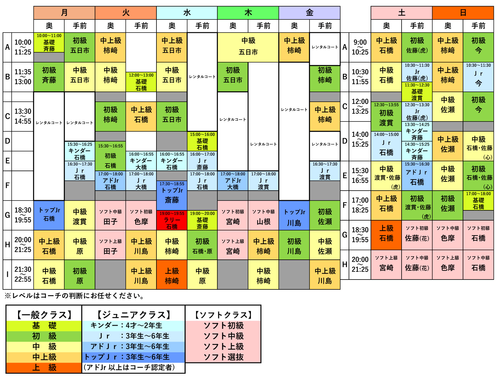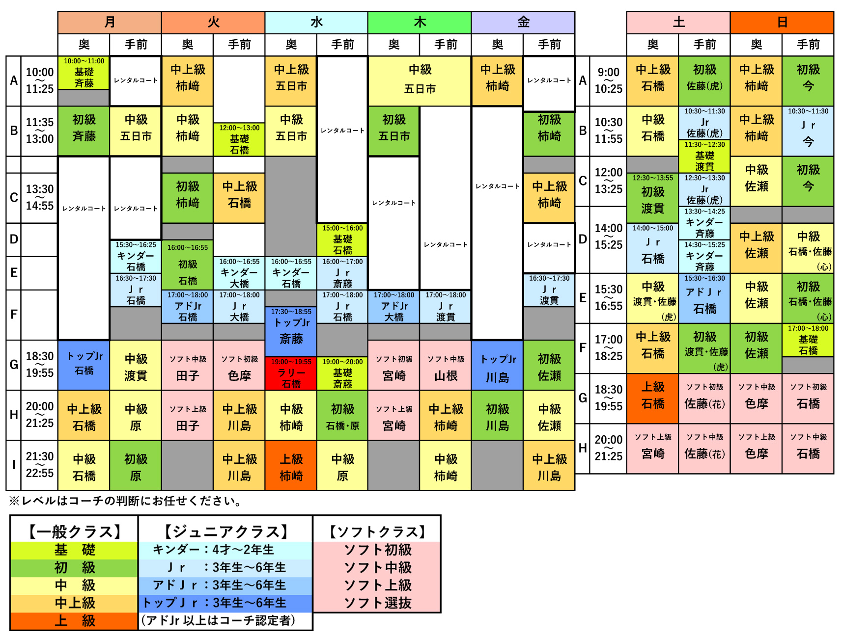 *クラスは、コーチの判断で移動していただく場合もございます。